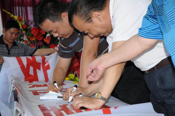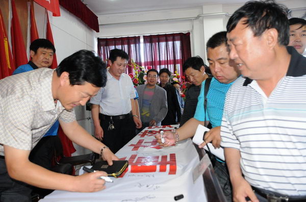 安監(jiān)站領(lǐng)導(dǎo)與董事長(zhǎng)在安全宣傳標(biāo)語(yǔ)上簽名