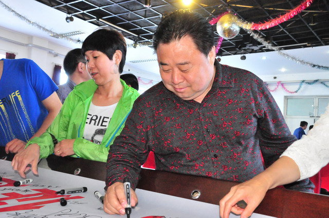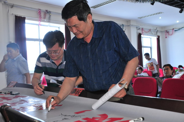 參會(huì)人員在“強(qiáng)化紅線意識(shí),促進(jìn)安全發(fā)展,落實(shí)安全規(guī)章”條幅上簽字。